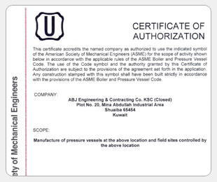 Manufacture of pressure vessels at the Mina Abdullah Industrial Area and field sites controlled by the Mina Abdullah Industrial Area. |